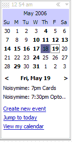 Welcome to Multiple Calendars GCal. This is a gadget for the Google Desktop application that allows you to view multiple Google Calendars. It uses much of Google's own calendar plugin (http://desktop.google.com/plugins/i/gdcalendar.html) however it also allows, as the name suggests, for multiple calendars to be added. It also has a few other additions. Features?